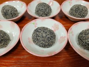 おやつは『餡いっぱいの黒ごま団子』です♪
