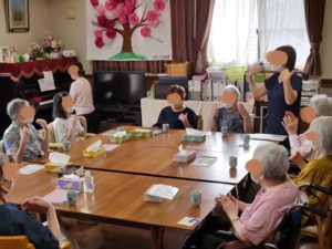レクリエーションは、楽しみながら脳の回転を促す目的で、恵子スタッフのピアノ伴奏による『歌』を身体を動かしながら歌いました♪♪♪♪♪♪♪
