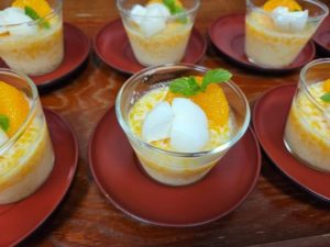 おやつは『牛乳みかんゼリー』です♪アイスとミントを飾りました(*^-^*)