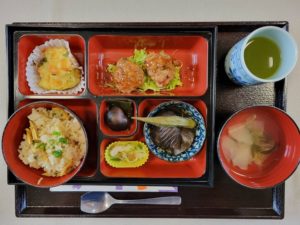 さくら御膳メインは『はんぺん入りつくね』です!主食は、あさりの旨味たっぷりの深川飯!