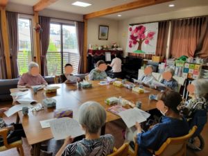 レクリエーションは、楽しみながら脳の回転を促す目的で、恵子スタッフのピアノ伴奏による『歌』を歌いました♪♪♪
