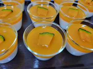 おやつは『ミルクとかぼちゃのゼリー』です。(*^-^*)今日は、寒天で固めました♪海藻も摂れて栄養あります♡