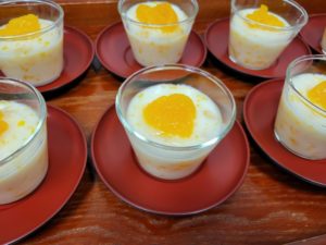 おやつは『ミルクみかんゼリー』です寒天で固めて、海藻が摂れました(*^-^*)