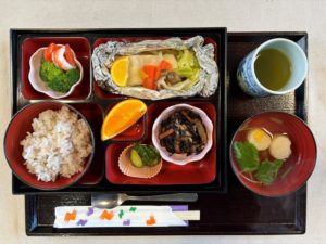さくら御膳メインは『白身魚と彩野菜のホイル蒸し・すだち添え』です。
