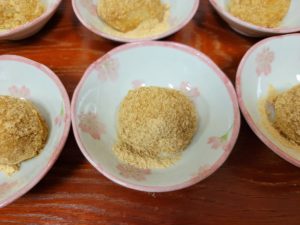 おやつは『金柑入りきなこもち』です。