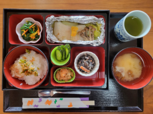 さくら御膳メインは『白身魚の柚子・野菜ホイル蒸し』です。