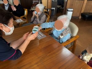 お食事・おやつは完食され、水分もしっかり摂られて、お身体を温めて大変にこやかに過ごされました。