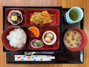 さくら御膳メインは『白身魚の彩野菜甘酢あんかけ』です。