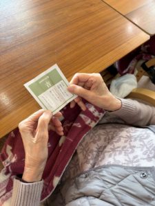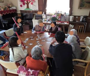 レクリエーションは、楽しみながら脳の回転を促す目的で『新春かるた大会』をしました。