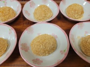 おやつは『金柑入りきな粉団子』です。できたての温かいうちにどうぞ(*^-^*)