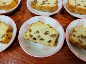 おやつは、恵子スタッフのお手製『レーズンバナナケーキ』です♪しっとりしていて美味しい~✨✨✨と大人気でした♪