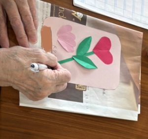 レクリエーションは、楽しみながら脳の回転を促す目的で『ペーパークラフト』をしました。