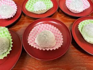 おやつは『金柑入り大福』です。敷地内の金柑を採り、甘露煮を作っていれました。