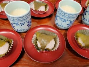 おやつは『桜餅』です♪塩加減が絶妙です(*^-^*)